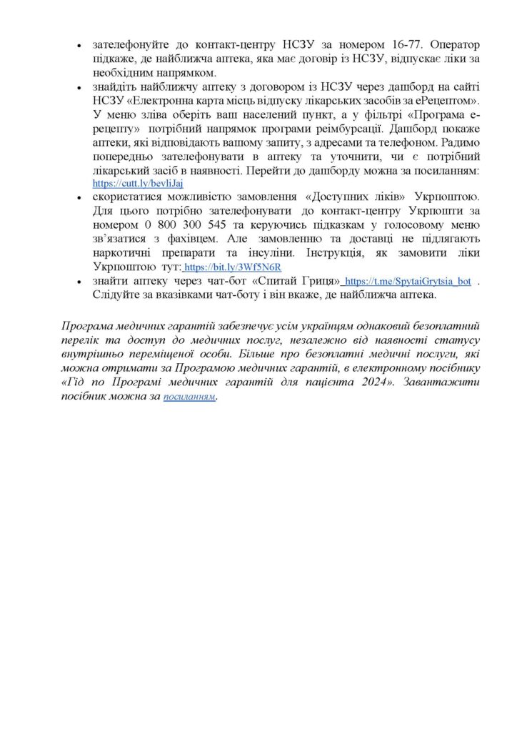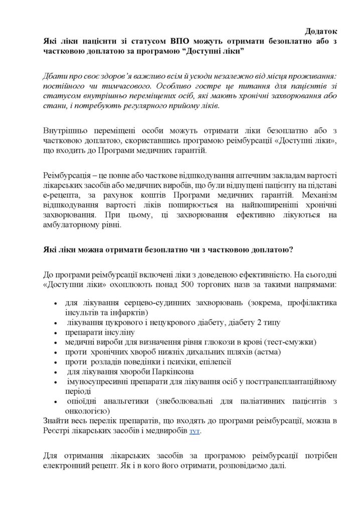 Які ліки пацієнти зі статусом ВПО можуть отримати безоплатно або зчастковою доплатою за програмою “Доступні ліки”