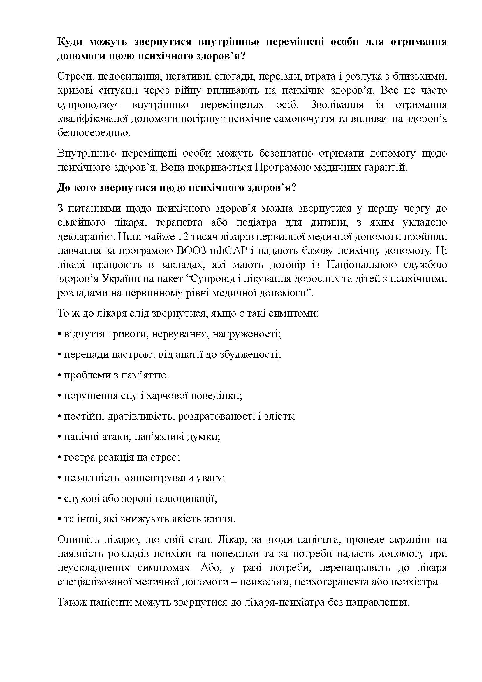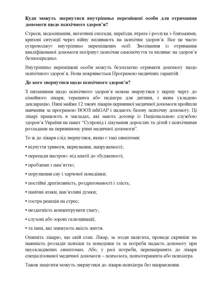 Куди можуть звернутися внутрішньо переміщені особи для отриманнядопомоги щодо психічного здоров’я?