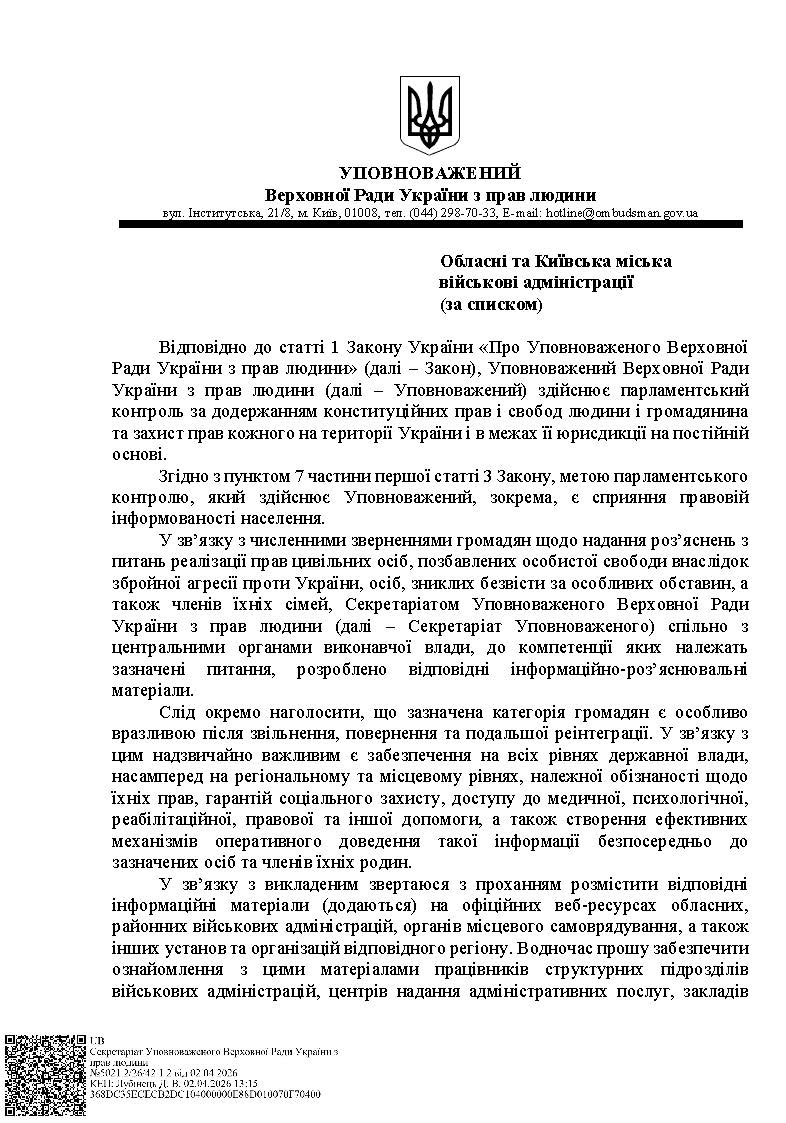 Права цивільних осіб, позбавлених особистої свободи внаслідок збройної агресії проти України, зниклих безвісти за особливих обставин, та членів їх сімей
