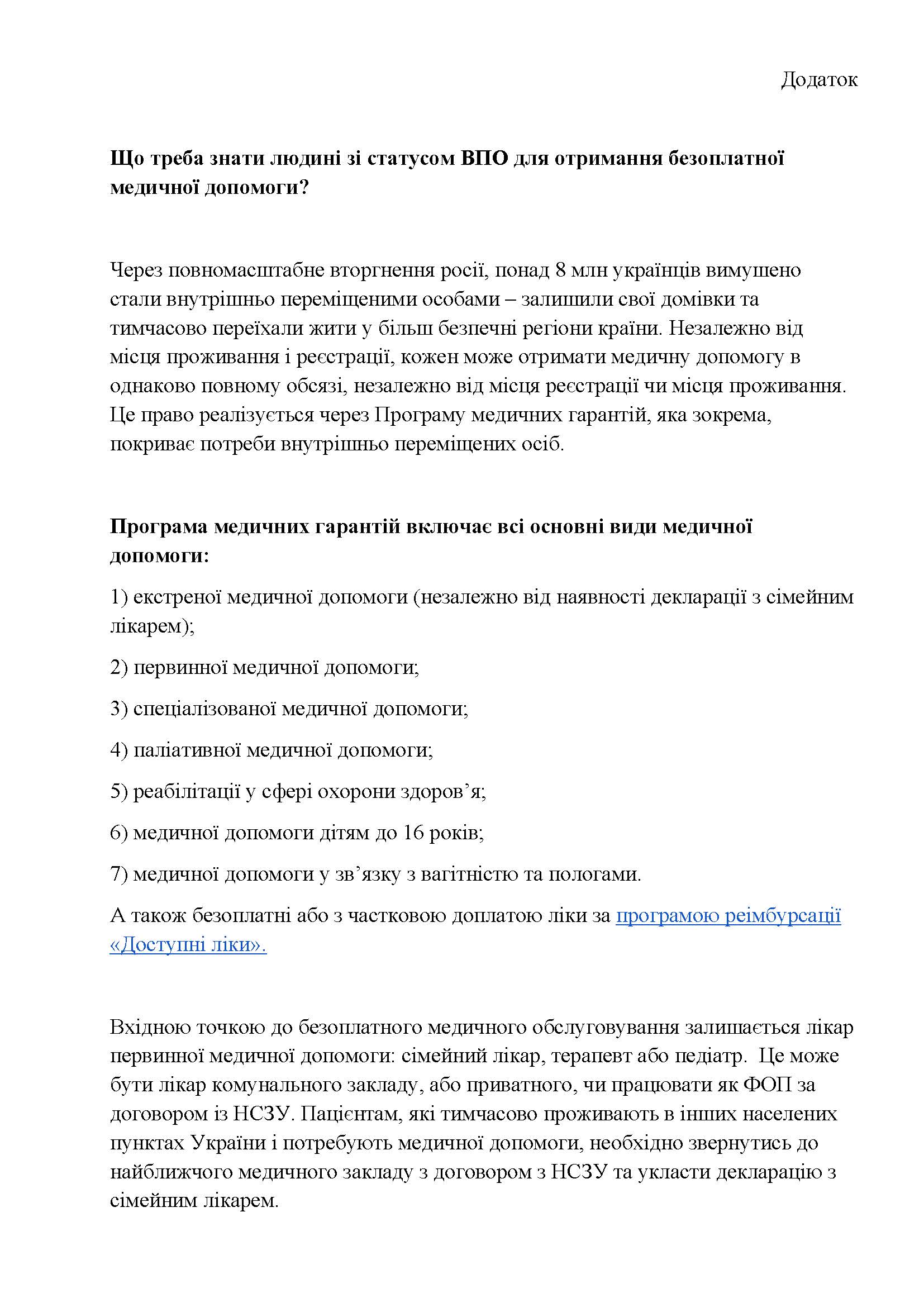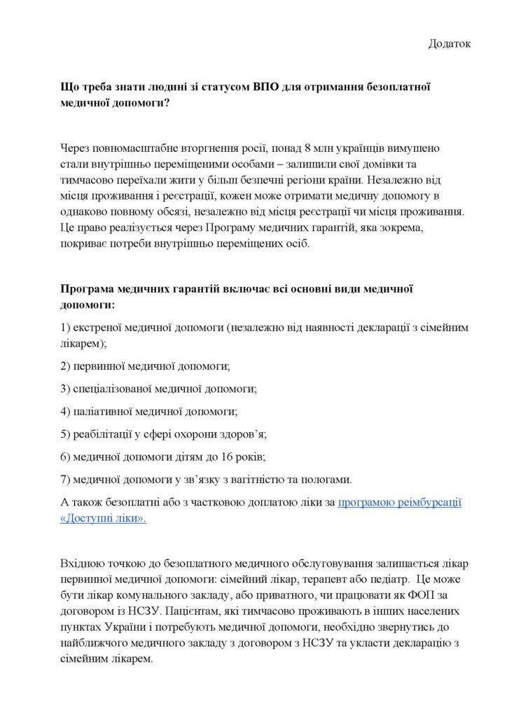Що треба знати людині зі статусом ВПО для отримання безоплатноїмедичної допомоги?