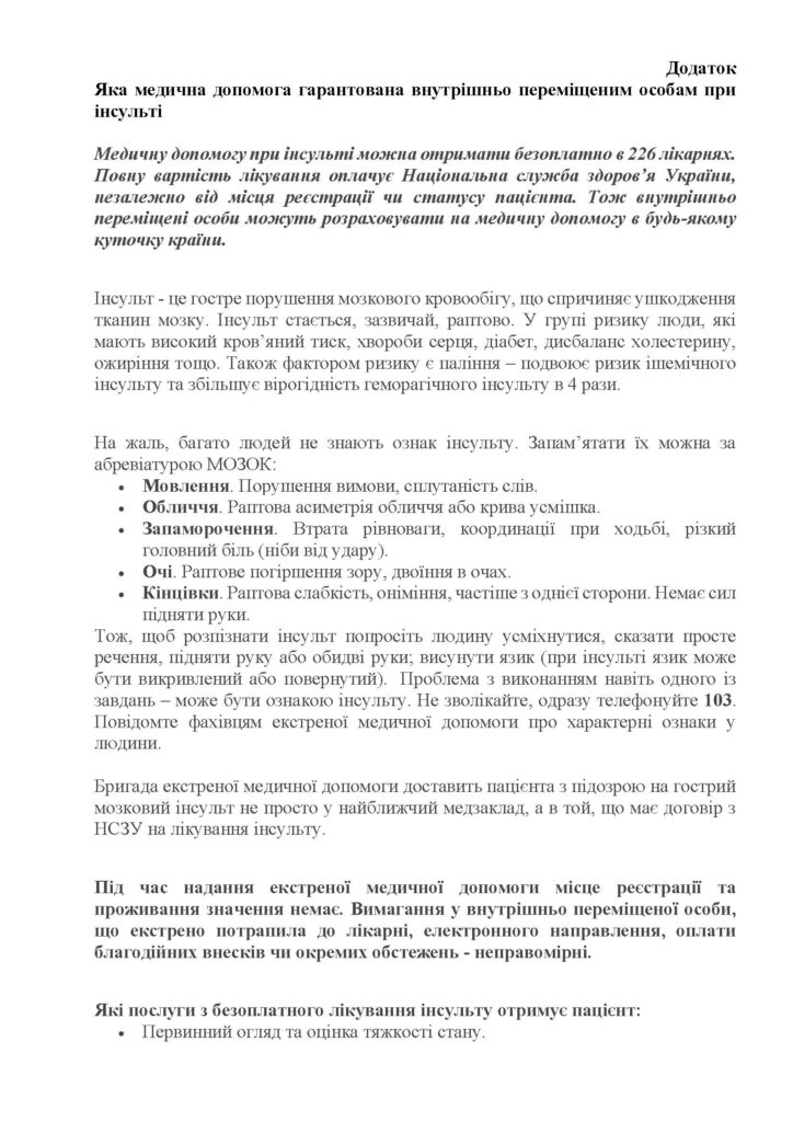 Яка медична допомога гарантована внутрішньо переміщеним особам приінсульті